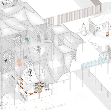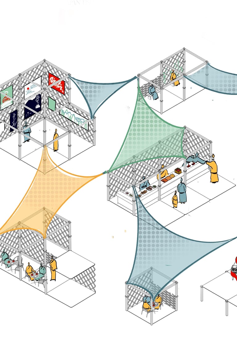 Mongolians have historically been a people with a nomadic culture, and their custom of using campsites without damaging them and leaving no trace in nature whenever they moved is an expression of the nomads' philosophy of respecting nature and living in harmony with it. This perspective is based on the wisdom of "coexisting" rather than "owning the land," and the main principle is to align one's existence with the rhythm of nature, keeping the traces left behind minimal. To revive and apply this philosophy to modern urban conditions, we developed a modular system inspired by the structure of the Mongolian ger (yurt). This structure is characterised by ease of assembly and disassembly, minimal earthwork, and the lowest possible impact on nature. Each module can be flexibly assembled into the desired shape and level, offering a solution that is environmentally friendly, sustainable, and cost-effective. Today, we are transitioning from a nomadic economy to a sedentary lifestyle, coexisting in environments composed of ger districts (sprawling residential areas) and conventional buildings. As buildings increase in the city centre, public open spaces are increasingly squeezed and diminished; conversely, as ger districts on the city outskirts expand horizontally, areas for citizens to spend their free time and environments for children to play have become scarce. This scarcity is one of the major problems facing the capital city, Ulaanbaatar.